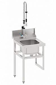 Стол предмоечный СПМП-6-0 (572х704 мм) душ-стойка, мойка цельнотянутая 400х400х250, для купольных машин МПК