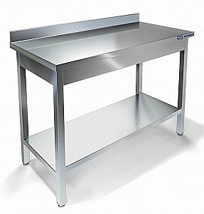 Cтол на нержавеющем каркасе из AISI430, столешница из AISI430 с бортом с усилением из ЛДСП, внизу полка.