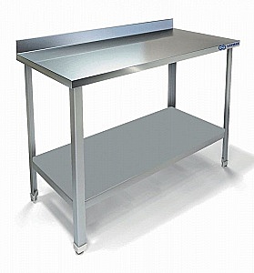 Столы производственные имеют широкую область применения: в пищеблоках, продовольственных магазинах, в цехах, связанных с переработкой пищевого сырья и т. д. Стол производственный имеет сборно-разборную конструкцию. Он состоит из столешницы и каркаса, изготовленного из нержавеющего уголка. Столы с бортом устанавливается к стене, либо бортами друг к другу. Столы укомплектованы сплошной полкой-накладкой. Ножки стола снабжены регуляторами высоты, что позволяет устранять неровности пола. В конструкции стола использованы элементы для придания устойчивости и предотвращения раскачивания во время эксплуатации. Универсальная конструкция позволяет легко производить сборку стола.