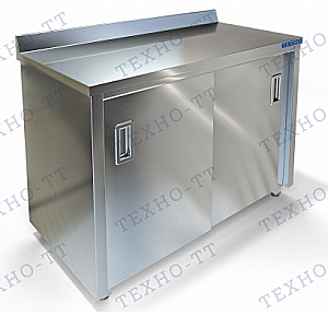 Столешница нержавеющая сталь AISI 304, ЛДСП, корпус нержавеющая сталь AISI 304, двери-купе, полка, борт, задняя стенка оцинкованная сталь