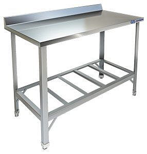 Cтол на каркасе из оцинкованного металла, столешница из AISI430 с бортом. Внизу полка решетка из оцинкованной стали.