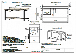 неразборный,борт 100,карман слева, сквозной вырез,полка сплошная на высоте 200,отступ спереди 20,сзади 15, столешница "матовое зеркало", металл aisi 430,профиль 40*40