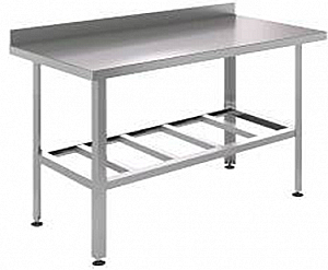 н/ст, толщина столешницы - 0,8 мм, разборная конструкция, решетчатая полка, каркас - оцин. уголок 40*40*1,5 мм, Hстолешницы -40 мм, Hборта - 40 мм, столешница усилена ЛДСП толщиной 16 мм, регулируемые ножки(+/-20мм), отступ от края 100 мм