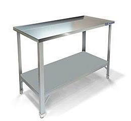 Столы производственные имеют широкую область применения: в пищеблоках, продовольственных магазинах, в цехах, связанных с переработкой пищевого сырья и т. д. Стол производственный имеет сборно-разборную конструкцию. Он состоит из столешницы и каркаса, изготовленного из нержавеющего уголка. Столы без борта устанавливаются в центре кухонного помещения и предназначены для четырёхстороннего доступа к рабочей поверхности. Столы укомплектованы сплошнойй полкой-накладкой. Ножки стола снабжены регуляторами высоты, что позволяет устранять неровности пола. В конструкции стола использованы элементы для придания устойчивости и предотвращения раскачивания во время эксплуатации. Универсальная конструкция позволяет легко производить сборку стола.