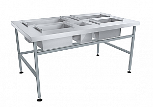 Стол имеет 4 герметичные съёмные ванны: 2-е размером 495х195х200 мм. и 2-е размером 345х195х300 мм.