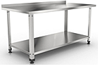 Стол с бортом, без полки, подложка ДСП, столешница 40 мм, обвязка с 4-х сторон. Нерж. сталь, разборная конструкция, стойки - нержавеющий уголок 40х40.