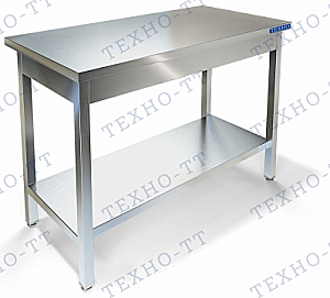 Cтол на нержавеющем каркасе из AISI304, столешница из AISI304 без борта с усилением из ЛДСП, внизу полка