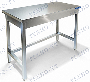 Cтол на нержавеющем каркасе из AISI430, столешница из AISI430 без борта с усилением из ЛДСП, внизу обвязка с трех сторон