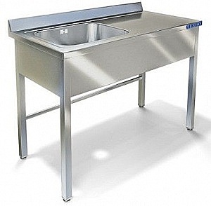 Стол производственный с бортом высотой 70мм и ванной моечной расположенной слева. Столешница из нержавеющей стали марки AISI 304 толщиной 1мм. Каркас сварной из трубы 40х40 нержавеющей стали марки AISI 304 толщиной 1,2мм. Одна цельнотянутая емкость размером 500х400х250 из нержавеющей стали марки AISI 304 толщиной 1мм. Фартук с трех сторон из нержавеющей стали марки AISI 430 толщиной 0,8мм. Регулируемые опоры. Стол поставляется в собранном виде.