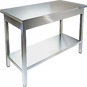 Столы производственные имеют широкую область применения: в пищеблоках, продовольственных магазинах, в цехах, связанных с переработкой пищевого сырья и т. д. Стол производственный имеет сборно-разборную конструкцию. Он состоит из столешницы и каркаса, изготовленного из конструкционного профиля 40х40 толщиной 1.2мм . Столы без борта устанавливаются в центре кухонного помещения и предназначены для четырёхстороннего доступа к рабочей поверхности. Столы укомплектованы сплошной полкой-накладкой. Ножки стола снабжены регуляторами высоты, что позволяет устранять неровности пола. В конструкции стола использованы элементы для придания устойчивости и предотвращения раскачивания во время эксплуатации. Универсальная конструкция позволяет легко производить сборку стола.