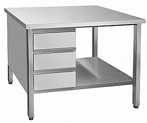 Стол имеет три выдвижных ящика размером 300х520х150 мм каждый, расположенные друг над другом.
