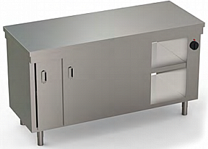 Тепловой сквозной стол с раздвижными дверцами из нержавеющей стали AISI 304.