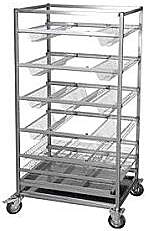Стеллаж имеет 6 полок, укомплектованных 3-мя сетками для глубоких и мелких тарелок,хромированные сетки.