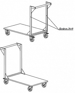 Неразборная, грузоподъемность до 150 кг., поверхность сплошная, все колеса усиленные, поворотные, 2 колеса с фиксатором, металл AISI 430, чертеж 0399-07_10_09 - СТАНДАРТ