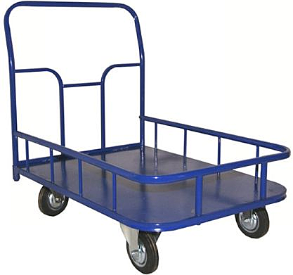 Удобно применять для перевозки грузов, габариты которых не превышают размеры платформы. Бортик высотой 150 мм препятствует падению груза, но обеспечивает удобный доступ к грузу, в отличии от тележек с высоким бортом. Эти тележки популярны для перевозки различных ёмкостей в кафе, ресторанах и барах, на различных производственных участках, для перевозки высоких коробок.