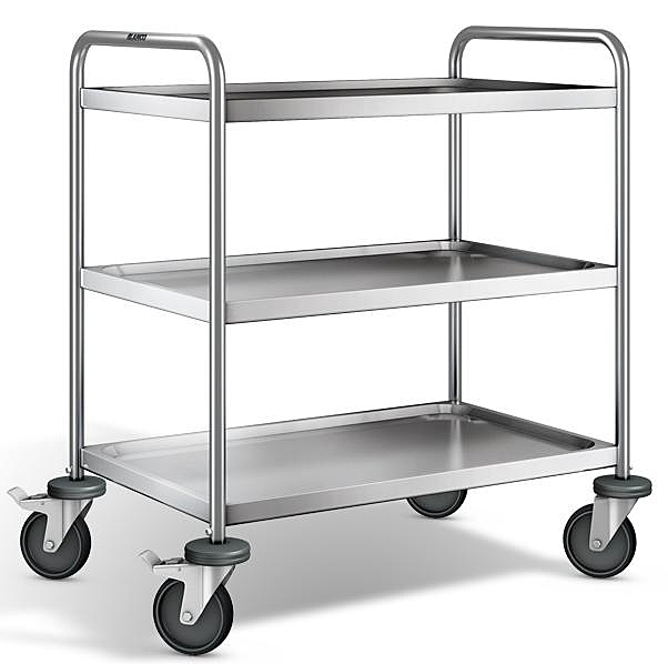 4 поворотныйх ролика из пластика: 2 с тормозом, диаметром 125 мм