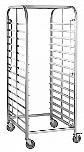Тележка-шпилька для гастроемкостей ABAT ТШГ-14-2/1 является вспомогательным оборудованием для предприятий общественного питания и используется для установки и транспортировки до 14 гастроемкостей типоразмера GN 1/1 или GN 2/1. Тележка изготовлена из нержавеющей стали. Тележка имеет четыре поворотных колеса, два из которых оборудованы стопором.