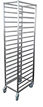 Нержавеющая сталь, сварная конструкция, 9 уровней направляющих под поднос 350х460мм (в комплект не входят), шаг 168,8 мм, каркас труба 20х20мм, 4 колеса (2 колеса с тормозом) d=100мм, загрузка по широкой стороне, сверху и снизу закрыта столешницами