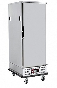Температурный режим от 0 до 5 °C. Предусмотрен цифровой экран с индикаций внутренней температуры. Корпус оборудования выполнен из нержавеющей стали. Модель с одной глухой дверью оснащена магнитным замком. Имеются колеса для удобного перемещения (два колеса из четырех со стопором). Предусмотрен бампер для защиты от случайных ударов.