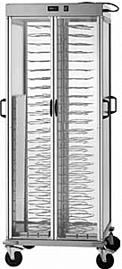 На колесах, с ручками, вместимость 92 тарелки.