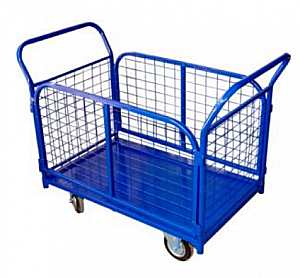 Тележка платформенная с быстросъемными сетчатыми бортами, сплошным дном, применяется для перевозки