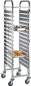 Тележка-шпилька для 15 противней 60*40 см изготовлена из нержавеющей стали AISI 201.Четыре колеса, два из которых с блокировкой.