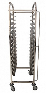 Тележка-шпилька для 15 гастроемкостей GN 1/1 или противней 60*40 см изготовлена из нержавеющей стали AISI 201.Четыре колеса, два из которых с блокировкой.