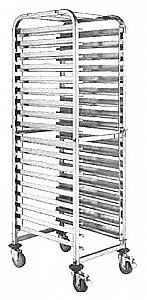 Тележка-шпилька универсальная REDGASTRO L/TR-15A используется на предприятиях общественного питания и торговли для временного хранения и транспортировки полуфабрикатов и готовой продукции на противнях размером 600х400 мм, в гастроемкостях GN 1/1 или на подносах 350х450 мм. Модель оснащена 4 поворотными колесами, 2 из которых оборудованы тормозными механизмами. Изделие выполнено из нержавеющей стали.