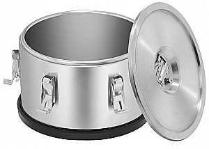 Термос профессиональный VA-TP10SS от VIATTO изготовлен из нержавеющей стали. Предназначен для транспортировки продуктов питания с сохранением температуры. Благодаря одинаковому диаметру всех моделей и наличию пластикового основания термосов VIATTO, модели разного объема стопируются друг на друга, что удобно при перевозке и хранении. Крышка термосов крепится с помощью 6 заклепок и оснащена специальным клапаном.