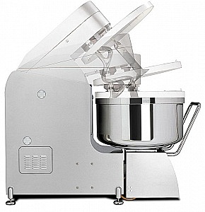 Конус управляется гидравлическим приводом и сцепляется под дежой, поддерживая постоянное давление во время эксплуатации и устраняя любую вероятность проскальзывания и износа. Вращение дежи обеспечивается коническим валом, гарантирующим постоянное число оборотов дежи, вследствие чего улучшается качество теста и эксплуатационные характеристики машины. Система тяги является бесшумной и лишенной механических люфтов.