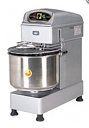 Тестомесильная машина для дрожжевого теста с несъёмной дежей. Скорость вращения спирали185 об/мин. Скорость вращения дежи 16 об/мин. Максимальная масса муки для замеса 16 кг. Объем дежи 40 л. Корпус из эмалированного стального листа. Дежа, месильный крюк, сепаратор, защитная решетка из нержавеющей стали. В тестомесе установлен один двигатель с защитой от перегрузки и защитой, блокирующей вращение при поднятой защитной решетке. Решетка для загрузки ингредиентов без остановки замеса. Панель управления аналоговая: регулятор скорости вращения- 2 скорости, кнопка пуска и кнопка аварийной установки. Низкий уровень шума. Машина установлена на регулируемых по высоте ножках.