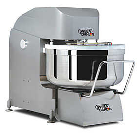 Профессиональные высокопроизводительные спиральные тестомесы со съёмной чашей и запатентованными системами конусной блокировки и вращения. Подходит для больших пекарен и промышленного производства.Новая система конусной блокировки и вращения технически превосходит традиционные системы, используя конусное соединение машины и тележки. Тележка блокируется с помощью конусного вала, который поднимаясь, центрует чашу и перемещает её в рабочее положение.Гидравлически управляемый конус под чашей поддерживает постоянное давление во время использования и устраняет любую возможность проскальзывания или износа. Конусный вал передаёт вращательное движение на чашу и обеспечивает ей постоянное число оборотов, тем самым повышая качество теста и производительность работы. Движение системы бесшумно и не имеет механического люфта. Устранение колебательных движений наконечника во время перемешивания при полной загрузке чаши особо сухими типами теста. Эта функция обеспечивает постоянное расстояние спирали до дна чаши, улучшая качество перемешивания теста для его последующего вальцевания.