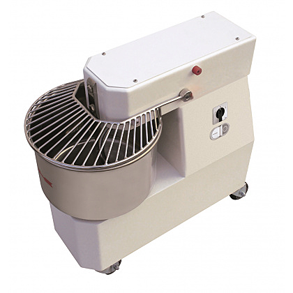 Спиральный тестомес Pizza Group IR 42 2V используется на предприятиях пищевой промышленности, общественного питания и торговли для замеса теста для приготовления пиццы, хлеба и тонких лепешек. Модель оснащена наклонной панелью управления с таймером, защитной решеткой над дежой и колесами. Спираль, решетка, дежа и отсекатель выполнены из высококачественной нержавеющей стали.