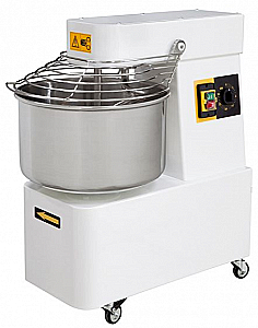 Спираль особой формы дает возможность за несколько минут получить совершенно однородное тесто. Дежа, спираль, центральная стойка и защитная решетка изготовлены из нержавеющей стали.