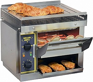 Тостер конвейерный электрический настольный оснащён электромеханической панелью управления, регулировкой скорости конвейера, кварцевыми нагревателями, вентилируемым двигателем, 4 регулируемыми ножками. Размеры рабочей зоны нагрева - 300х335мм. Нагрев осуществляется благодаря 8 инфракрасным кварцевым трубкам. Тостер подходит для непрерывного выпекания пиццы, пирогов, брускетты, панини, наггетсов; разогрева круассанов, вафель, выпечки. Конвейерная лента с сеткой из нержавеющей стали очищается щеткой. Верхняя панель и лотки загрузки/выгрузки полностью снимаются для очистки. Производительность до 540 шт/ч.
