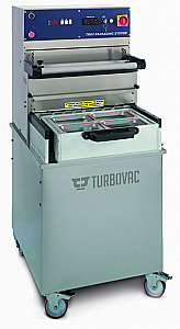 Цикл упаковки (откачка воздуха, компенсация газовой смесью, запайка, обрезка) производится автоматически, загрузка и выемка контейнеров осуществляется вручную. Машина работает по принципу: только запайка и в режиме запайка/вакуум/газ. Требуется подключение к сжатому воздуху