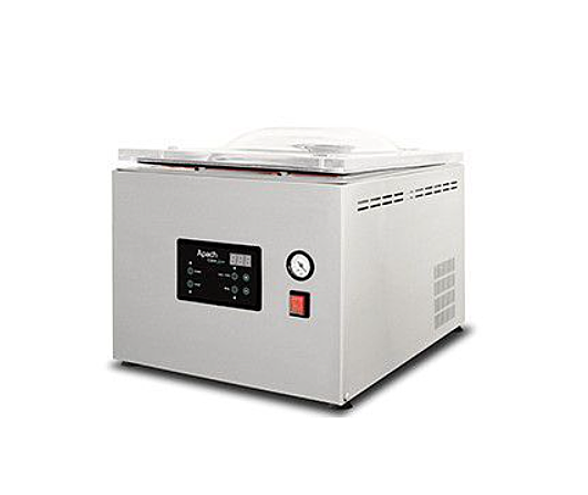 415х592х407 мм, 0,55 кВт, 220В, камера 343х434х175мм, 12м3/ч, планка 310мм, макс. шир. пакета 300мм, функция газации, в комплекте наклонная полка для вакуумирования жидких продуктов и устройство для вакуумирования вне камеры (использовать с гофрированными пакетами). Дополнительная программа CHEF для маринования и дэзаэрации