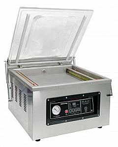 Русифицированная панель управления для установки времени вакуумирования, времени запайки шва, времени охлаждения шва, температуры запайки. Крышка с функцией датирования (дата упаковки проплавляется на шве).