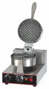 Вафельница EKSI HWB-1 используется на предприятиях общественного питания и торговли для выпечки вафель круглой формы. Модель оснащена электромеханической панелью управления с таймером и регулировкой температуры и устойчивыми ножками. Жарочная поверхность выполнена из чугуна с высокой теплопроизводительностью.