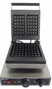 382x305x233, 1,8 кВт, 220В, материал - литой алюминий с тефлоновым антипригарным покрытием, форма вафли - стандартная бельгийская, размер вафли 160*100. температурный режим 50-300C