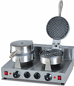 • Две круглые рабочие поверхности (диаметр 18,5см) для 4х треугольных вафель
