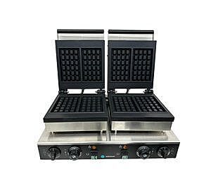 Двойная, материал - литой алюминий с антипригарным покрытием, форма вафли - стандартная бельгийская, размер вафли 160*100