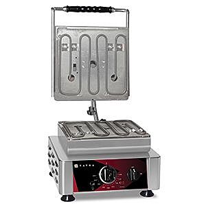 Вафельница оснащена электромеханической панелью управления с выключателем питания, терморегулятором и индикаторами питания и нагрева. Температурный диапазон оборудования 50-300°C.