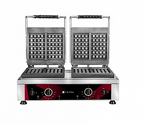 2,2+2,2 кВт, фиксированные рабочие поверхности из чугуна, 2 зоны, классическая вафля 2+2 х 100х170х15 мм, жиросборник, термостат 50°- 300°C, корпус из нержавеющей стали