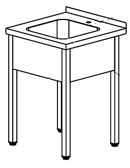Разборная, борт, одна цельнотянутая мойка 500х500х300 мм справа, отверстие под смеситель, фартук с 4-х сторон, столешница – металл AISI 304, профиль 40х40.