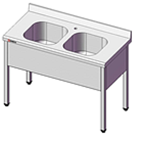 Ванна моечная двойная без полки. Ванна моечные цельнотянутая изготовлена из высококачественной пищевой нержавеющей стали. Имеет два моечных отверстия. Комплектуются сливным сифоном. Каркас изготовлен из трубы 40х40мм, марка стали AISI 304. Регулируемые по высоте ножки для устранения неровностей пола. Размеры моек 500х500х300мм.