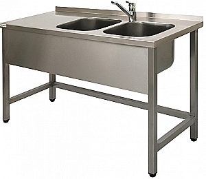 Ванны моечные цельнотянутые изготовлены из высококачественной пищевой нержавеющей стали. Комплектуются сливным сифоном. Каркас изготовлен из трубы 40х40мм.Ножки регулируются по высоте для устранения неровностей пола. Наполнение столешницы - ДСП-зашитая металлом, выполнена со скругленным передним торцом и объемным бортом. Марка стали AISI 304.