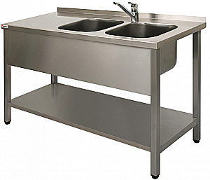 Ванны моечные цельнотянутые изготовлены из высококачественной пищевой нержавеющей стали. Комплектуются сливным сифоном. Каркас изготовлен из трубы 40х40мм.Ножки регулируются по высоте для устранения неровностей пола. Наполнение столешницы - ДСП-зашитая металлом, выполнена со скругленным передним торцом и объемным бортом. Марка стали AISI 304.