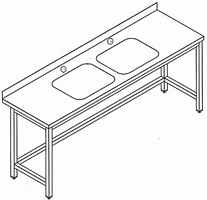 Конструкция имеет две цельнотянутые мойки размером 500х500х300мм, наличие сливного отверстия 50мм.