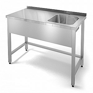 Неразборная, борт, одна цельнотянутая мойка 500х500х300 справа, отв. под смеситель, фартук передний, обвязка с 3-х сторон, столешница – металл AISI 304, профиль 40х40, чертеж 4221П-19_03_27-ВМ - СТАНДАРТ